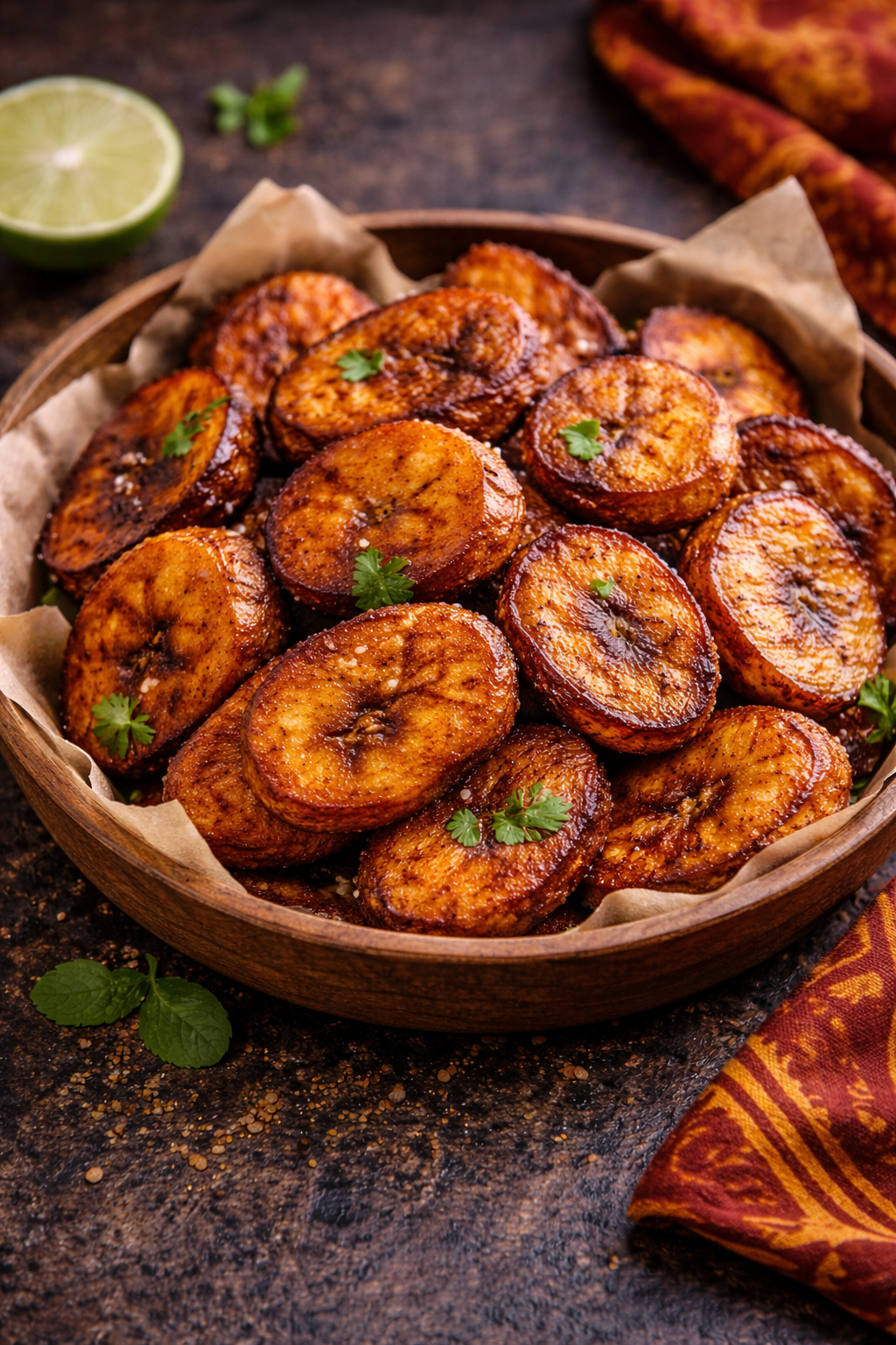 Sweet ripe plantain, sliced and fried until golden with caramelised edges and a soft centre. A true West African classic, naturally sweet and the perfect companion to jollof or grilled meats.