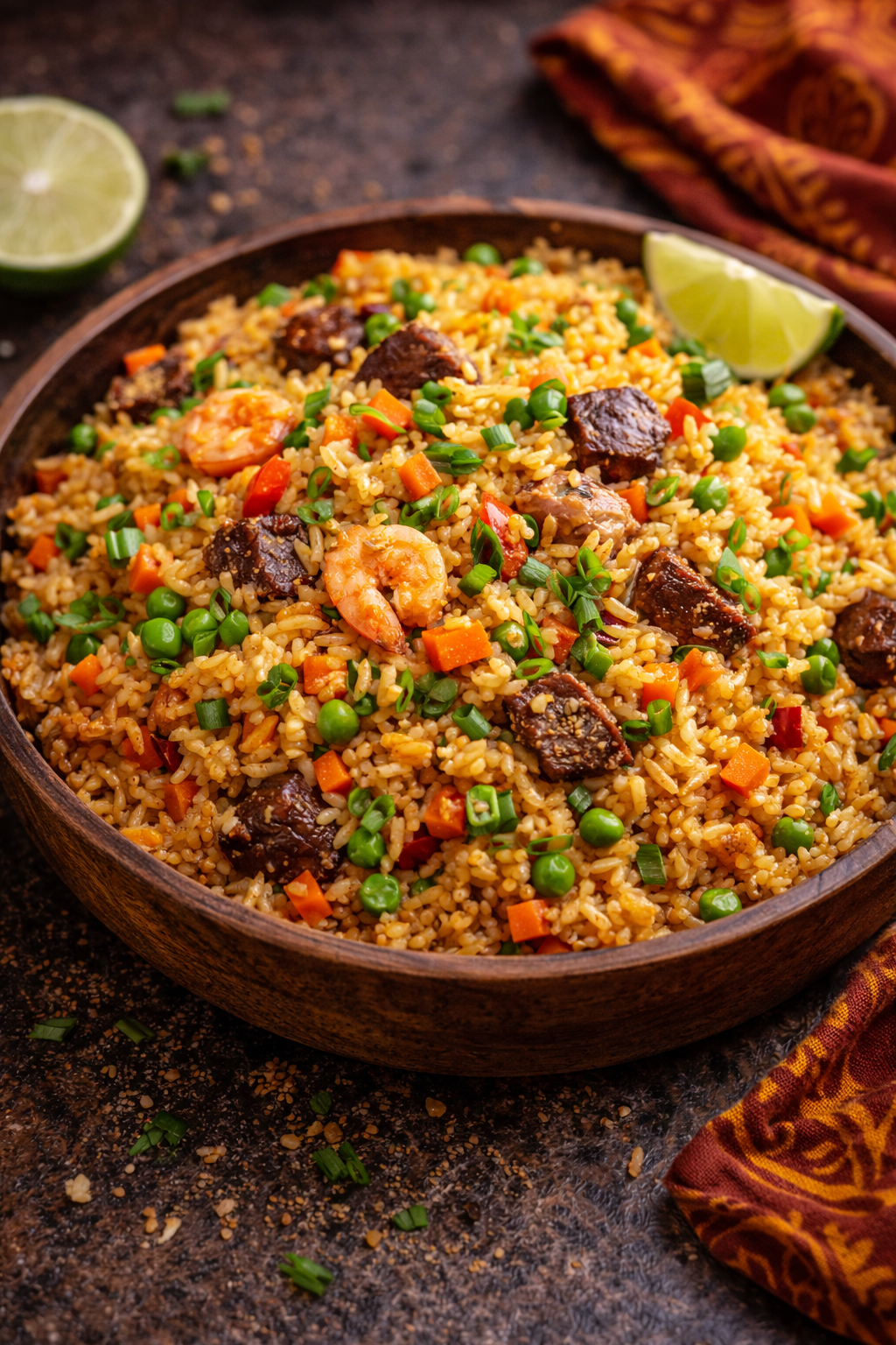 Colourful Nigerian fried rice packed with flavour and cooked the proper way. Savoury, fragrant and made to pair with your favourite grill.